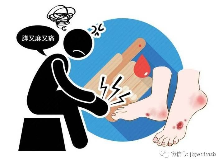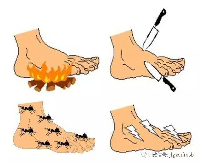 1、神經(jīng)病變表現(xiàn)?;贾つw干而無汗,肢端刺痛、灼痛、麻木、感覺減退或缺失,呈襪套樣改變,行走時有腳踩棉絮感。