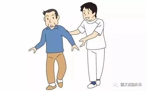5、 床邊行走:站立后如無(wú)不適再扶其行走;身體虛弱者扶住床欄沿床四周活動(dòng)。