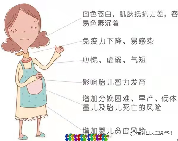 1.對孕婦的影響 貧血孕婦對分娩、手術和麻醉的耐受能力差,即使是輕度或中度貧血。重度貧血可因心肌缺氧導致貧血性心臟病;貧血對失血耐受性降低,易發(fā)生失血性休克;貧血降低產(chǎn)婦抵抗力,容易并發(fā)產(chǎn)褥感染。世界衛(wèi)生組織資料表明,貧血使全世界每年數(shù)十萬孕產(chǎn)婦死亡。