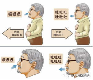 ?腹式呼吸:因?yàn)樾g(shù)后胸部有傷口,患者會(huì)出現(xiàn)不會(huì)胸式呼吸,指導(dǎo)患者在深吸氣末屏氣,然后縮唇,緩慢的通過口腔盡可能呼氣,以降低肋弓,使腹部往下沉。一般呼氣時(shí)間是吸氣時(shí)間的2倍左右。