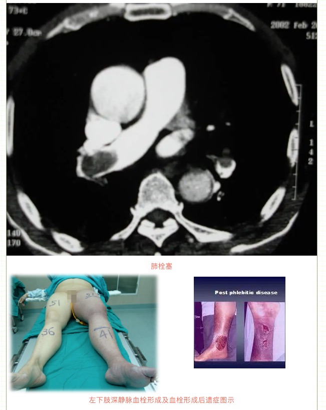 由于下肢靜脈血栓形成導(dǎo)致下肢靜脈血液回流受阻,可能出現(xiàn)單側(cè)腿腫脹、疼痛等表現(xiàn),若出現(xiàn)血栓脫落還可能會導(dǎo)致肺栓塞,嚴(yán)重者可危及生命!如果下肢深靜脈血栓形成沒有接受規(guī)范治療,等血栓機化后,有可能會出現(xiàn)下肢反復(fù)腫脹(晨輕暮重)、皮膚色素沉著、下肢靜脈曲張等表現(xiàn),這就是深靜脈血栓形成后綜合征,也叫血栓后遺癥。
