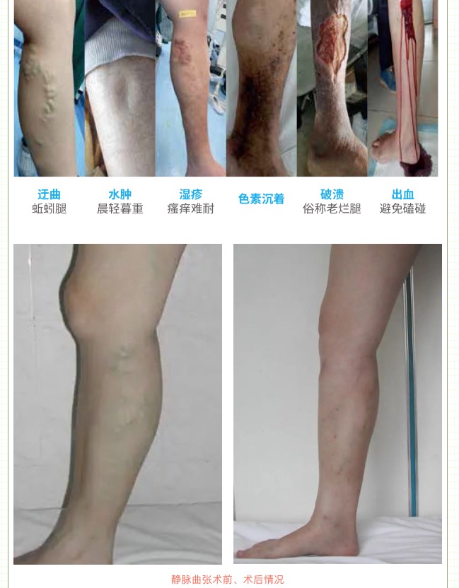 當(dāng)河道沒有阻塞,而是河水泛濫反水的時候,經(jīng)常會有小腿酸、脹、抽筋、靜脈迂曲、皮膚色素沉著等表現(xiàn),最典型的疾病就是下肢靜脈曲張。下肢靜脈曲張作為血管外科最常見的疾病,發(fā)病率可達10%-15%以上,我們需行下肢靜脈造影,明確靜脈曲張是原發(fā)性還是繼發(fā)性靜脈曲張(如深靜脈血栓形成后綜合征、髂靜脈狹窄、閉塞等),并根據(jù)病情進行規(guī)范治療,繼發(fā)性靜脈曲張根據(jù)病因進行治療。