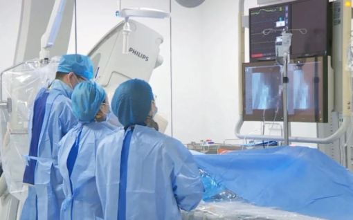 醫(yī)院立即啟動了胸痛中心綠色通道。心血管內(nèi)科李桂武主任、劉興剛主任迅速到位,患者瀕臨崩潰的問道:“大夫,我能活么,孩子媽媽雙目失明,還有倆孩子20歲不到,我要死了,這個家就完了”,李主任、劉主任握著患者的手堅定地說道:“我們的目的不僅僅是讓您活著,還要讓您更有質(zhì)量的生活,所以你要堅持,相信我們。”隨即,李主任、劉主任為張先生進行了冠狀動脈造影,結(jié)果顯示,張先生的前降支近段完全閉塞,這是導(dǎo)致他胸痛的直接原因。李主任當(dāng)機立斷,決定進行急診冠脈支架植入術(shù)。