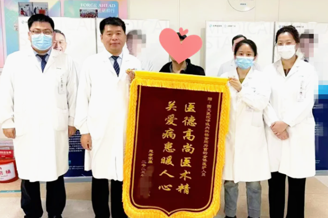 在醫(yī)護(hù)人員的悉心照料下,趙叔的病情趨于穩(wěn)定,7天后復(fù)查血化驗(yàn)顯示白細(xì)胞、血小板恢復(fù)正常,從入院時(shí)的焦灼不安到出院時(shí)的如釋重負(fù),趙叔和家人深刻的感受到了國(guó)文醫(yī)院的溫暖。在出院之際,特別送上一面錦旗,以表感謝。