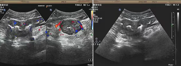 我院超聲檢查在此次診療過程中展現(xiàn)出了顯著的技術亮點。一方面,它能做到 “明察秋毫”,通過高頻探頭可以清晰地顯示腸壁各層結構的變化,為臨床判斷病變性質提供了客觀、準確的依據(jù),讓醫(yī)生能更清晰地了解腸道內部的病變狀態(tài)。另一方面,它實現(xiàn)了 “精準評估”,不僅準確找到了病變的位置,還能全面評估病變對周圍組織的影響,這對于協(xié)助醫(yī)生制定科學合理的治療方案起到了至關重要的作用,有助于提高治療的有效性和安全性。