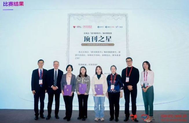 在2025年金秋的長城國際心臟病學(xué)大會上,一場別開生面的學(xué)術(shù)交鋒吸引了全場的目光。長城會是中國乃至亞洲的心血管頂尖學(xué)術(shù)盛宴,此次大會與以往“只聽不講”的傳統(tǒng)模式不同,本屆大會由丁香園聯(lián)合推出的“偵察兵”專場賽,旨在鼓勵臨床醫(yī)生勇于挑戰(zhàn)、思辨求真。經(jīng)過多輪激烈角逐,國文醫(yī)院心內(nèi)科團隊?wèi){借扎實的學(xué)識、縝密的邏輯與出色的團隊協(xié)作,從眾多參賽者中脫穎而出,與北京安貞醫(yī)院團隊、浙江醫(yī)科大學(xué)附屬第二醫(yī)院團隊一同會師總決賽,并最終取得佳績,榮獲大會至高榮譽——“頂刊之星”。美國國家醫(yī)學(xué)院院士、國際頂刊JACC主編,耶魯大學(xué)醫(yī)學(xué)院 Harlan Krumholz 教授親自為國文醫(yī)院心內(nèi)科團隊頒發(fā)了榮譽證書。