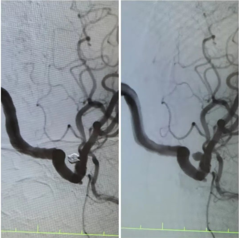 手術(shù)臺上,丁院長握著導(dǎo)管在血管中精準(zhǔn)穿梭,如同在迷宮中尋找唯一的出口。當(dāng)微彈簧圈依次填入動(dòng)脈瘤,造影顯示瘤腔被完美“封堵”,載瘤動(dòng)脈血流恢復(fù)通暢,這枚困擾老人許久的“炸彈”,終于被安全拆除。術(shù)后的王阿姨頭暈頭痛癥狀消失,胸悶氣短的老毛病也因身心狀態(tài)改善而減輕。“感覺腦袋里的‘炸彈’沒了,整個(gè)人都輕快了!”